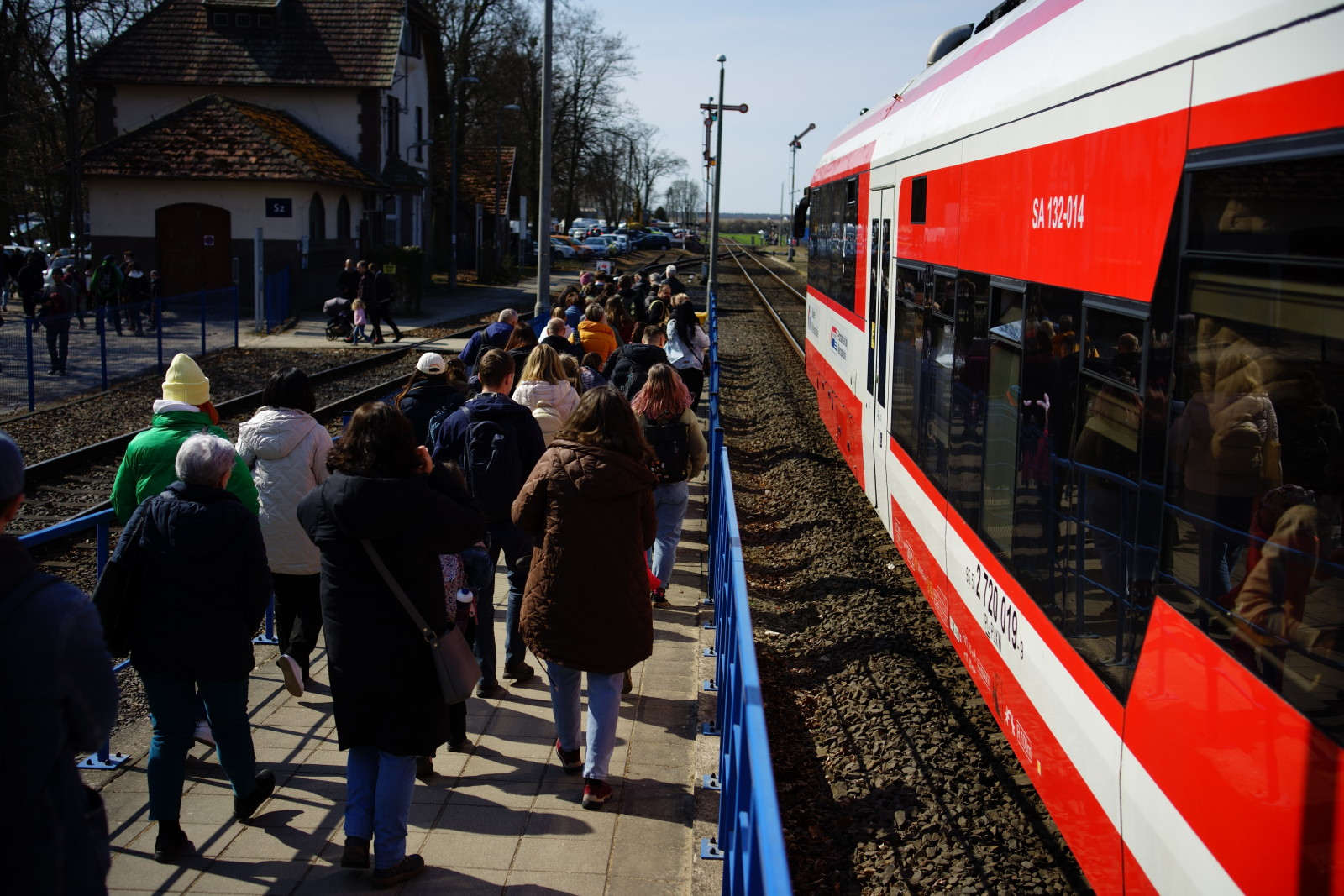 Wysiadanie na stacji Szreniawa było procesem: nieco trwało, aż wszyscy zainteresowani opuścili pokład pociągu. Działo się to szczęśliwie w atmosferze życzliwości. Pojedyncze głosy gburków były na bieżąco topione w dominujących uśmiechach. To dobra i skuteczna metoda.